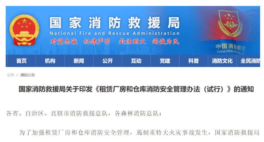 国家消防救援局关于印发《租赁厂房和仓库消防安全管理办法 (试行)》的通知