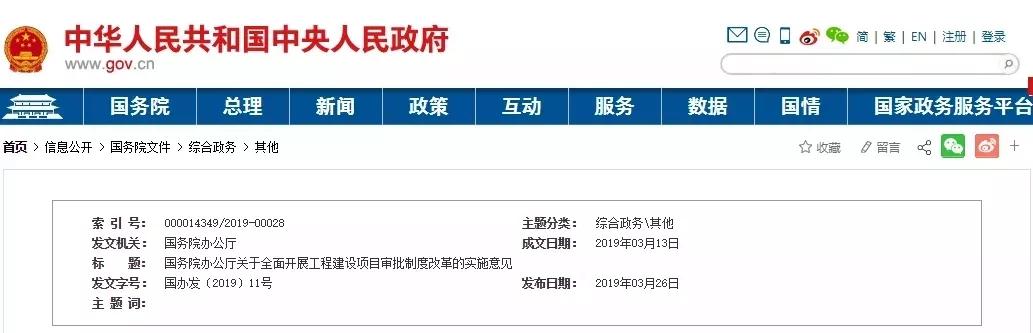 3月26日,国务院办公厅印发《关于全面开展工程建设项目审批制度改革的实施意见》。
