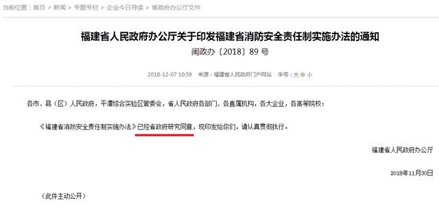 2018年11月30日,《福建省消防安全责任制实施办法》颁布施行。从这个文件中,你能读出点什么吗?