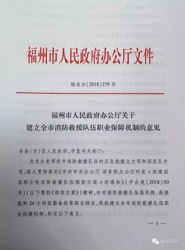 为充分发挥全市消防救援队伍的应急救援主力军和国家队作用,近日,福建省福州市政府出台《全市消防救援队伍职业保障机制》,为全市消防救援队伍职业保障机制进行明确规定。