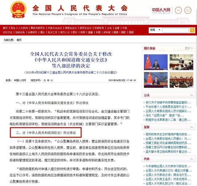 本文的标题是《新《消防法》有哪些修改?“老板们”需要看过来!》来源于网络由作者陈灿采编而成,本文关键词为:老板,有哪些,主要讲述了第十三届全国人民代表大会常务委员会...