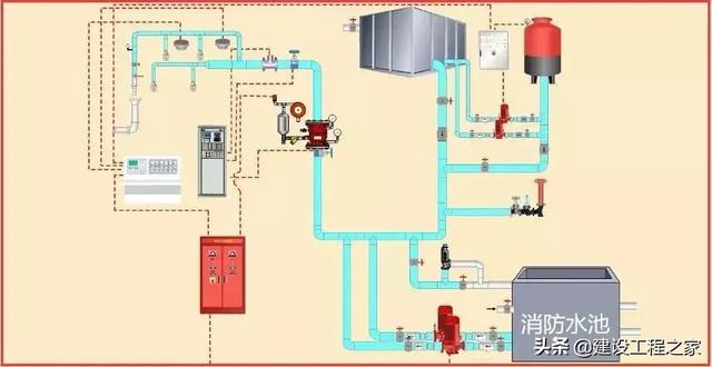 1、消防水池、消防水泵、水泵接合器、消防水箱(参见消火栓系统)。用气压罐代替高位消防水箱,消防水箱的出水管未与报警阀前的管道连接。
