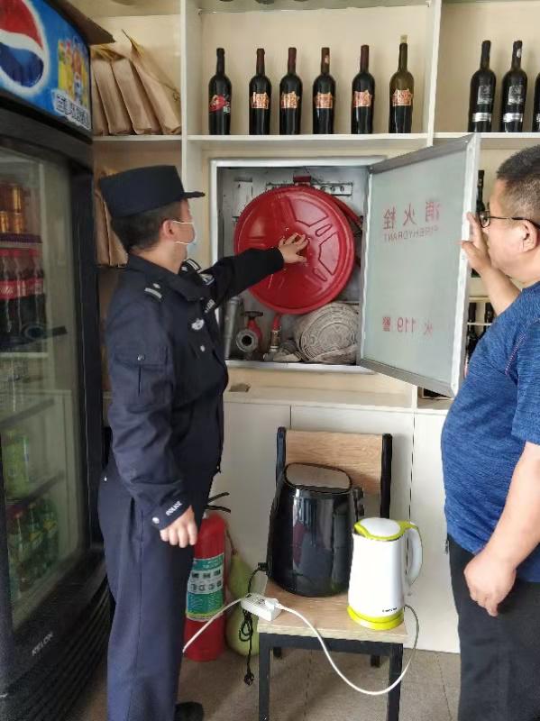 检查行动中,该所主要对辖区娱乐场所、行业场所、人员密集场所及易燃易爆生产经营场所等消防安全重点部位进行全方位、地毯式的隐患排查。针对检查过程中发现有电器线路铺设混乱、裸露等现象,责令商户立即规整,有序排放,杜绝用电隐患;对于消防器材配备不足、消防安全意识不强的商铺,要求各商户在完善设施、及时配备补齐消防器材的同时,大力提升消防安全意识。最后,派出所民警要求各消防负责人要以"如履薄冰、如临深渊"的心态,克服侥幸心理、警钟长鸣,进一步筑牢消防安全工作的责任感和紧迫感。