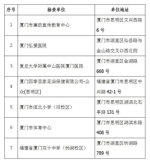 为深化消防执法改革,全面落实“双随机、一公开”消防监督抽查工作,进一步创造良好稳定的消防安全环境。2021年5月1日起至5月31日,厦门市消防救援支队将对机关、团体、企业、事业单位开展消防监督抽查,现将系统随机抽取的监督检查事项公告如下: