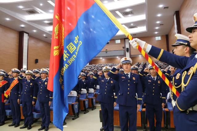全体指战员面向国家综合性消防救援队伍队旗庄严宣誓