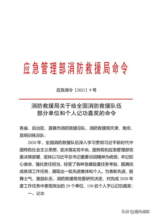 本文的标题是《喜讯!应急管理部消防救援局授予福州市闽侯县消防救援大队集体三等功》来源于网络由作者陈迅采编而成,本文关键词为:闽侯县,福州市,主要讲述了4月19日,应急管...
