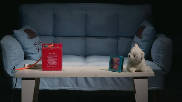 这是一个模拟客厅的实验室,桌上摆放了一个正在充电的蓄电池