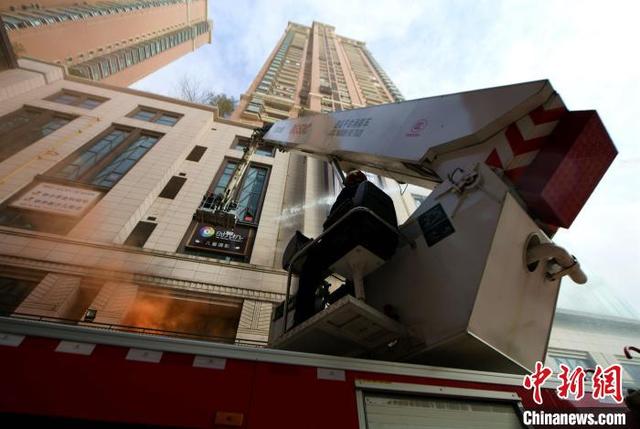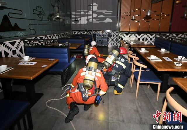 消防员参与现场演练。 王东明 摄 2月3日,福建省消防救援总队在福州市马尾区名城城市广场开展大型综合体跨区域实战演练,举高车、排烟车、灭火机器人齐上阵,检验全省跨区域增援能力及社会综合应急救援行动力量调度、指挥和协调作战能力。公安、卫健、应急、供电、供气等部门到现场参与救援工作。