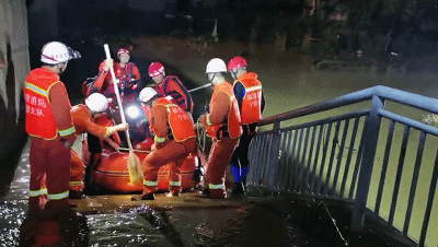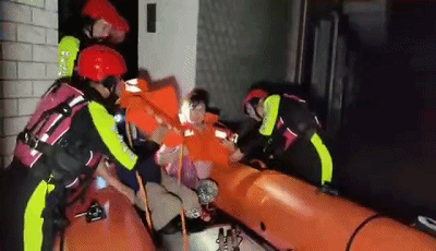 21时20分,消防员在17幢3单元营救5名被困群众。21时45分,消防员先后抱出2名儿童和6名滞留老人安全撤离该区域。22时16分,消防员再次深入该区域进行营救时,发现一名盲人妇女因为行动十分不便,无法撤离。现场消防员主动趟水将其背上舟艇,并安抚其情绪,调整心态,平安撤离该区域。