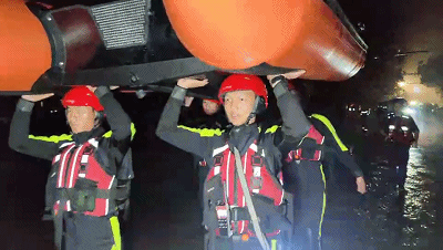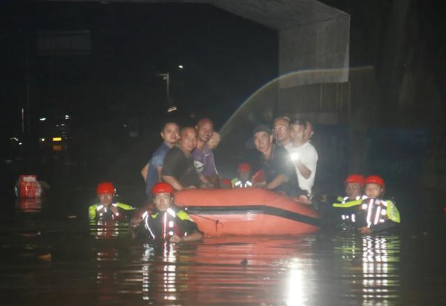 “当时,距离被困人员的工厂超过1公里远,沿途路段高低不平,一段是路面,下一段又是积水区,深的部位超过2米,浅的地方不容驾驶舟艇,只能扛着橡皮艇前进,途中要经过铁路涵洞、还要横穿一条河,水位高、水流急,且水下情况复杂,消防指战员依托橡皮艇在水中摸索着前进,边探路、边搜救。”据参与救援的消防员介绍,经过研判,两个救援小组携带绳索、救生圈等救援器材,依托橡皮艇摸索着前进乘坐舟艇进行营救。