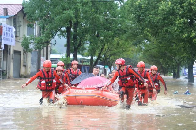 7月9日,消防指战员在南平武夷山市营救转移被困群众