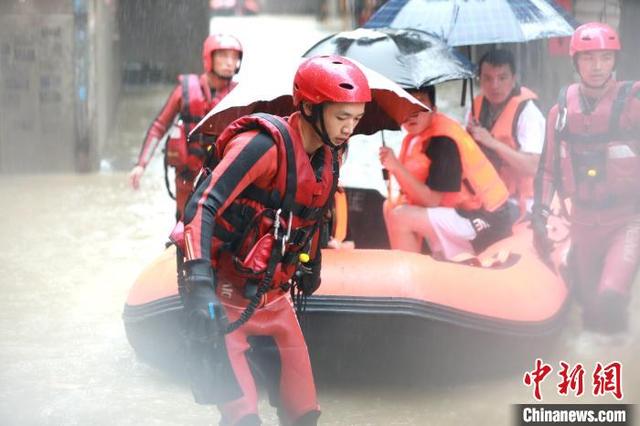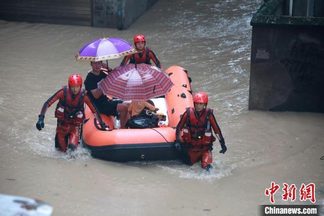消防队员用橡皮艇转移受困群众。 福建森林消防供图