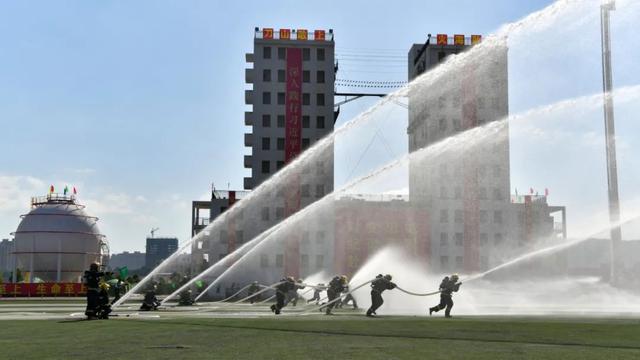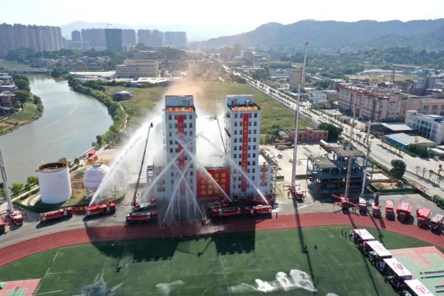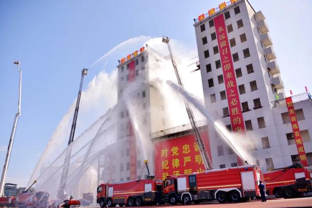期间,领导嘉宾和现场群众观摩了新训消防员单兵技能科目、灭火救援班组操法和整建制实景实装实战合成演练。