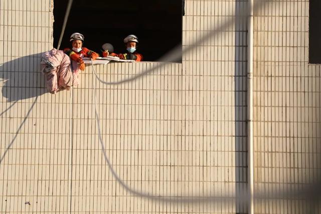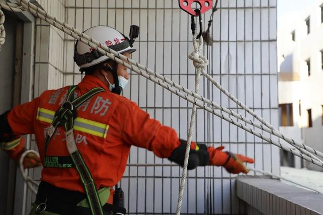 演练假设某工厂职工宿舍楼二楼有1名人员脚被卡在马桶内,需要救援。经侦查发现,正面通道和宿舍楼室内一楼楼梯因地震受阻,救援人员通过厂房二楼窗户进入厂房,架设绳桥,将其余救援人员、装备运送至职工宿舍楼二楼,开展精准破拆救援,对被困人员进行救助。