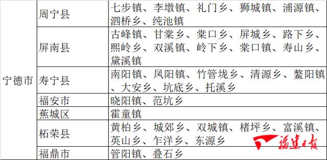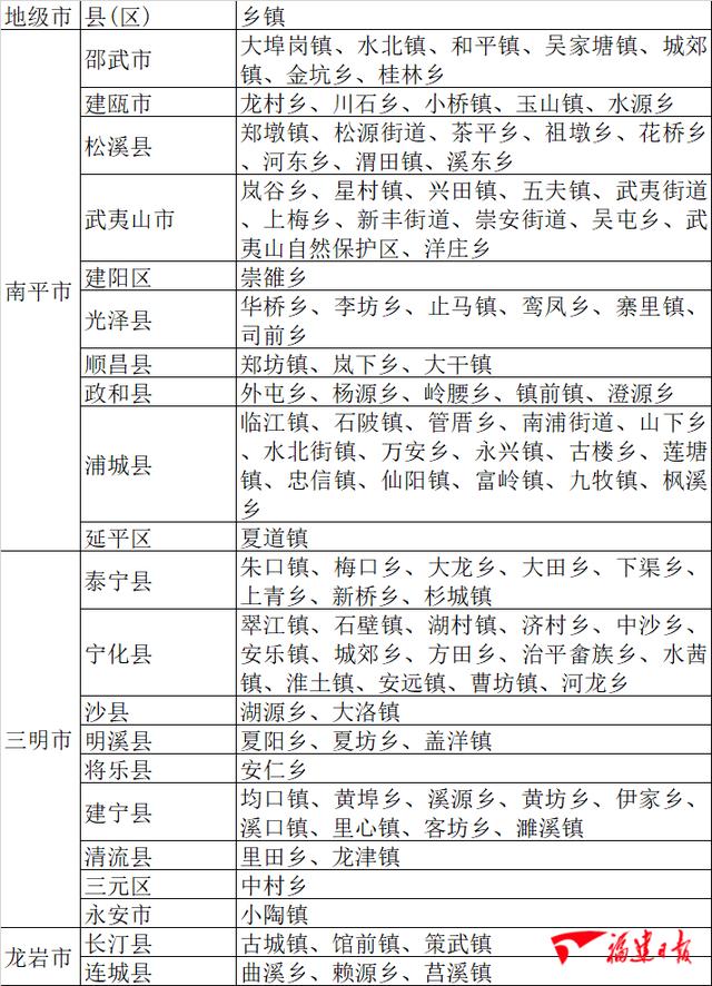 三明、南平、宁德三市共7个县(市、区)