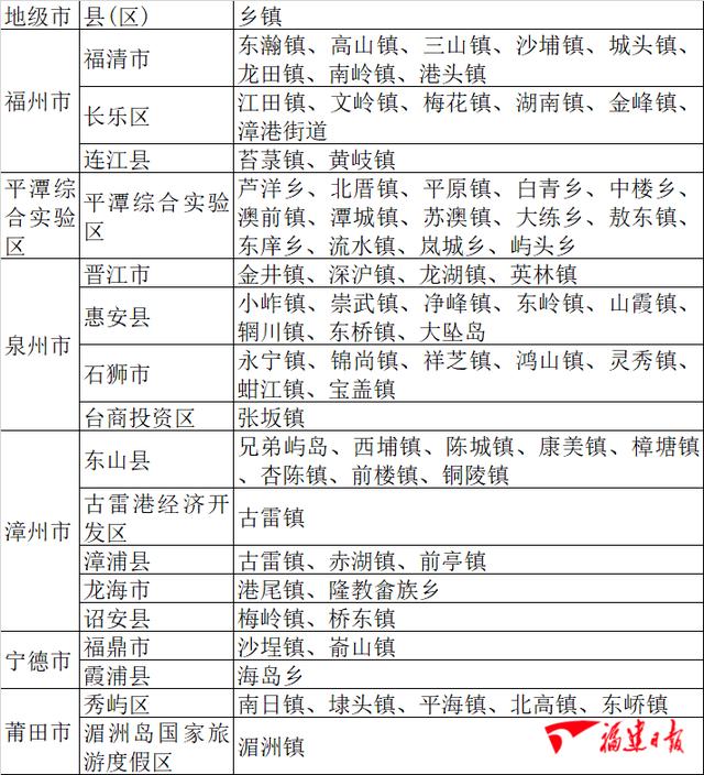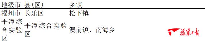 6日08时~9日20时,福州市、平潭综合实验区等2个市 共2个县(市、区) 共3个乡镇