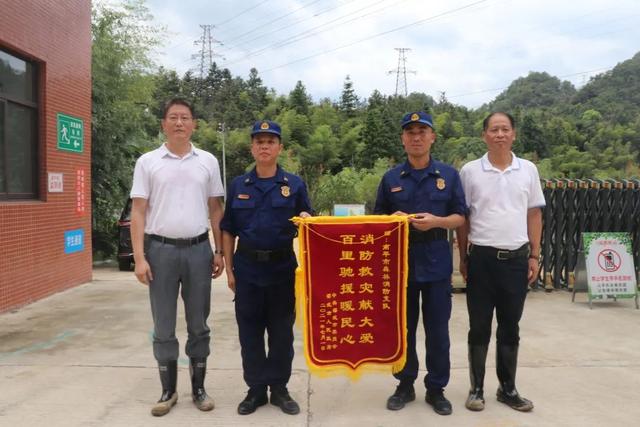“感谢你们,森林消防员们,一路顺风”“你们永远是邵武市人民最亲切的人”……得知队伍离开消息后,邵武市人民政府来到队伍出发集结地,送来锦旗,握手致谢并主动要求合影留念。