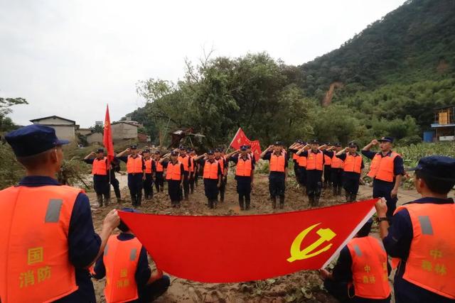 “我志愿加入中国共产党…”,灾区废墟之上,参战指战员庄严宣誓。此次任务开始以来,该支队紧盯指战员“活思想”,跟进防汛救灾全过程,见缝插针组织重温入党誓词、观看庆祝中国共产党一百周年大会直播、学习讨论、心理疏导,层层深入进行思想发动,勉励全体指战员弘扬刀山敢上、火海敢闯的战斗精神,敢于攻坚克难,敢于夺取胜利,并组织指战员深入学习习近平总书记关于防汛救灾系列重要指示精神,及时做好思想工作,确保队伍始终保持昂扬的精神状态,引导指战员在学习思考、分享交流中厚植为民情怀。