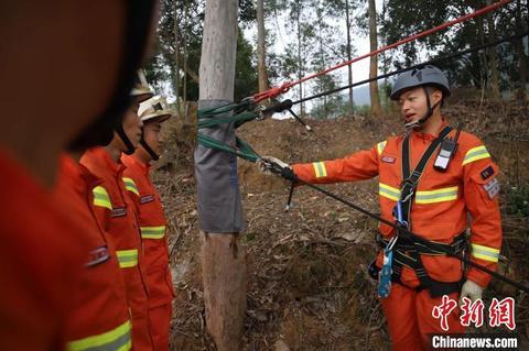 中新网福州3月20日电 (卢文锋)“港华,悬崖下有几处火点,你带两名队员下去,用水枪把它浇灭了,防止火点进一步蔓延。”接到队长贾昆昆的指示后,李港华带着卫琦、谷建伟两名队员迅速搭设绳索系统下降到悬崖下方,不一会儿便把火点成功扑灭。