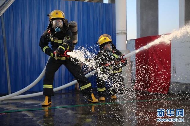 10月28日,在福建省三明市将乐县,参赛队员在进行“射水打靶”。 近日,福建省消防救援总队在三明市将乐县举行高层建筑跨区域灭火救援实战演练暨比武竞赛。此次演练共调集全省10个消防救援支队的3支重型、7支轻型救援专业队参加,开展远程供水系统铺设及收整操、高层供水打靶操、密闭空间人员搜救操、作战训练安全知识竞赛等。 新华社发(周杨东 摄)