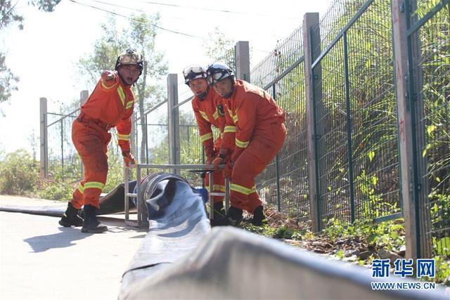 10月28日,在福建省三明市将乐县,消防员在“远程供水系统铺设及收整操”项目竞赛中。 近日,福建省消防救援总队在三明市将乐县举行高层建筑跨区域灭火救援实战演练暨比武竞赛。此次演练共调集全省10个消防救援支队的3支重型、7支轻型救援专业队参加,开展远程供水系统铺设及收整操、高层供水打靶操、密闭空间人员搜救操、作战训练安全知识竞赛等。 新华社发(周杨东 摄)