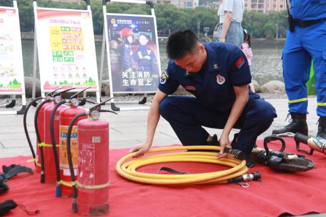 宁德市防灾减灾宣传活动在福鼎市江滨公园举行,活动现场各类消防器材吸引了大批市民驻足观看,消防指战员详细讲解、演示了个人防护装备以及消防器材的使用,同时邀请市民近距离接触和体验专业的消防救援装备。