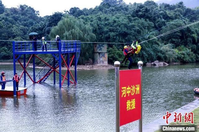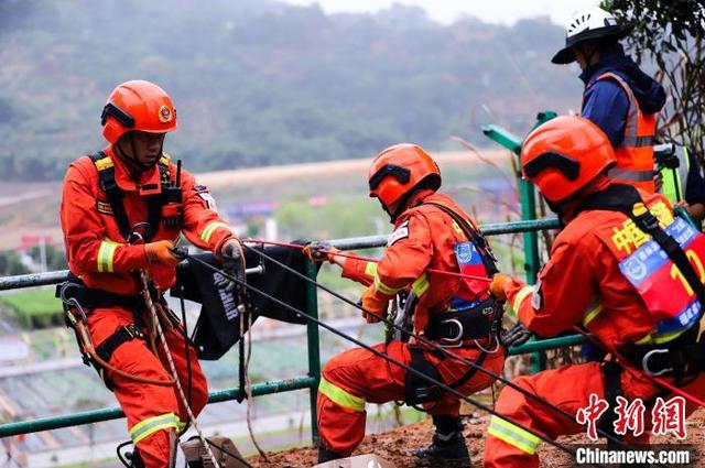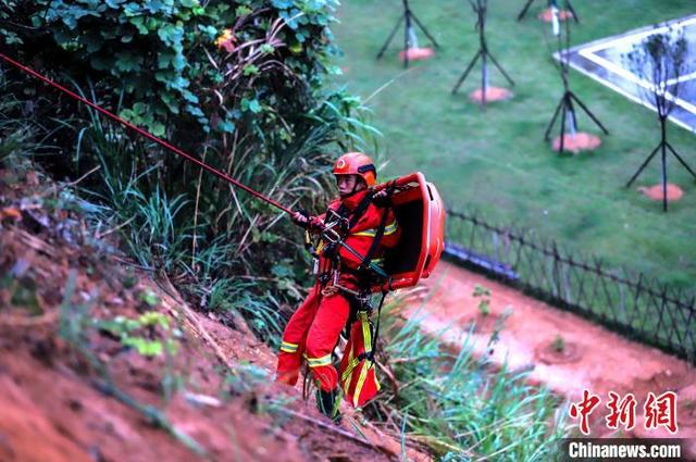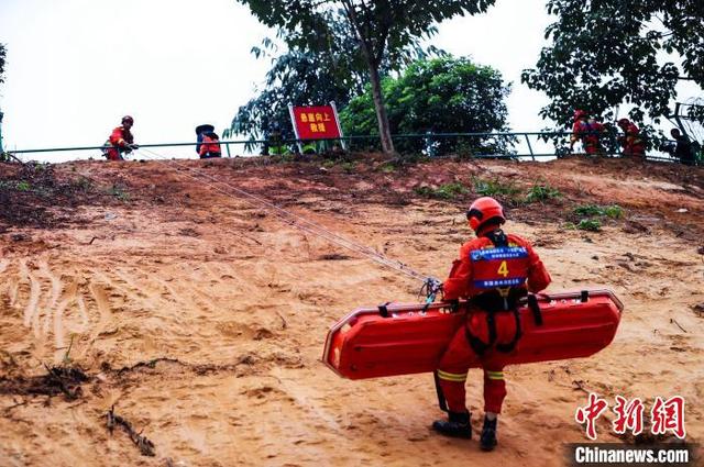 比武队员通过绳索系统营救受困人员。 卢文锋 摄