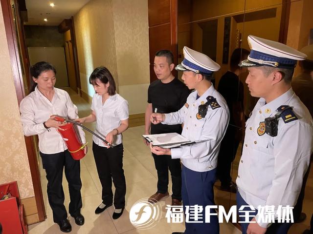 永泰县消防救援大队消防监督员来到涉事酒店,