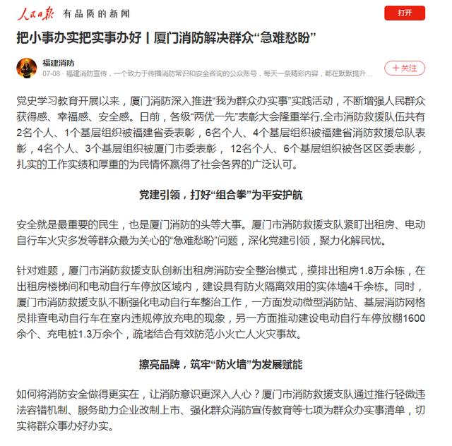 作品标题:《把小事办实 把实事办好 厦门市消防救援支队解决群众“急难愁盼”增进民生福祉》