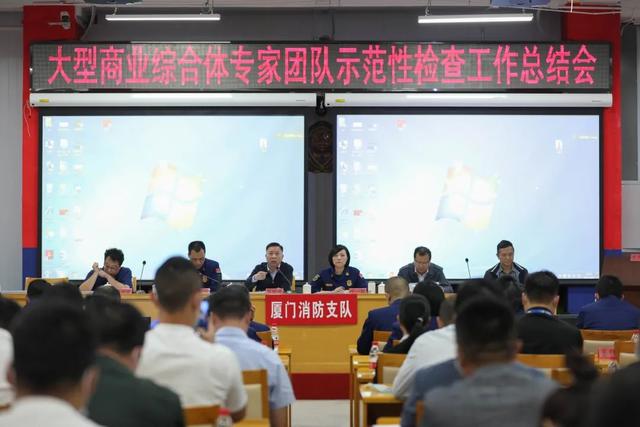 为巩固商业综合体专家团队“体检式”检查工作成效,进一步推进大型商业综合体消防安全治理,督促各部门、各综合体落实消防安全责任,加大隐患整改力度。4月9日,厦门市消防救援支队召开全市大型商业综合体专家团队示范性检查总结会,通报检查问题、培训业务、部署下一步工作。市商务局副局长陈跃进、执法局、国资委业务处室相关负责人和全市33家大型商业综合体单位消防安全责任人、专家团队检查组成员等近100人在现场参加了会议;全市54家综合体单位的消防安全管理人组织本单位重点员工通过视频的方式参会。