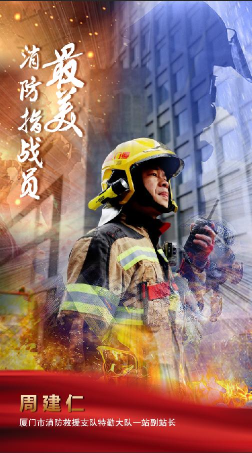 11月10日,福建省消防救援总队揭晓2020年度福建省“最美消防指战员”表彰名单,厦门市消防救援支队特勤大队一站副站长周建仁获选2020年度福建省“最美消防指战员”。