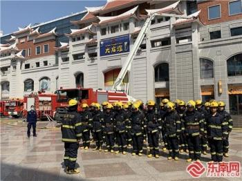 台海网3月26日讯 据东南网报道 25日,厦门市殿前街道翔鹭社区联合厦门消防支队、闽南古镇物业在闽南古镇开展综合性灭火救援演练。现场出动消防救援车8辆,共计100余人参加。