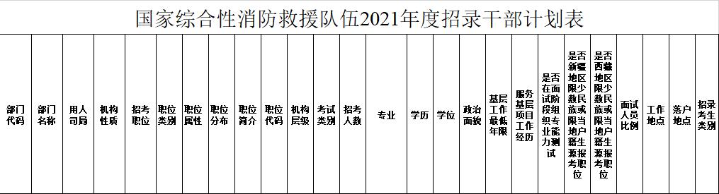 为满足国家综合性消防救援队伍人才补充需要,按照公务员法和公务员录用有关规定,现将国家综合性消防救援队伍2021年度招录干部有关事项公告如下: