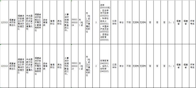 3.具有符合职位要求的实战经验。具体为:(1)国家综合性消防救援队伍现职消防员,应当入职满2年(截至报名当年10月,原公安消防部队、武警森林部队留队义务兵直接入队的消防员满1年),并在推荐的总队工作1年以上,具有本科以上学历,获得学士以上学位,所学专业不限,限报考本总队;(2)政府专职消防队和政府专职林业扑火队现职消防员,须在基层一线灭火救援岗位(按基层站、队战斗班组人员编成认定)工作,应当具有2年以上直接从事消防救援实战工作经历,并在推荐的单位工作1年以上,具有本科以上学历,获得学士以上学位,所学专业不限。政府专职消防队消防员限报考本省份消防救援队伍,政府专职林业扑火队消防员限报考本省份森林消防队伍。