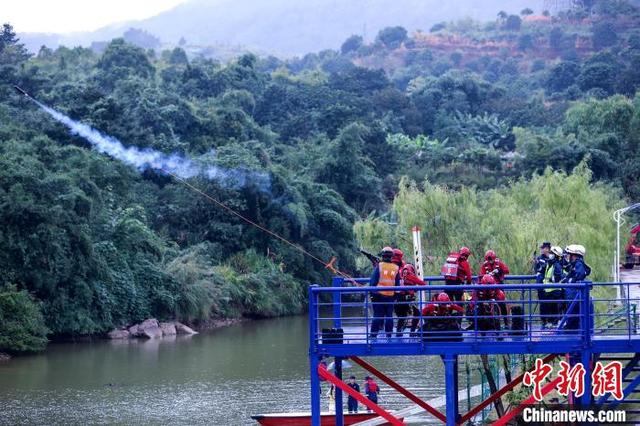 本文的标题是《首届森林消防特种救援技能比武在福州上演》来源于网络由作者陈荩采编而成,本文关键词为:福州,特种,主要讲述了比武队员使用抛投器送绳至对岸。 卢文锋 摄比武...