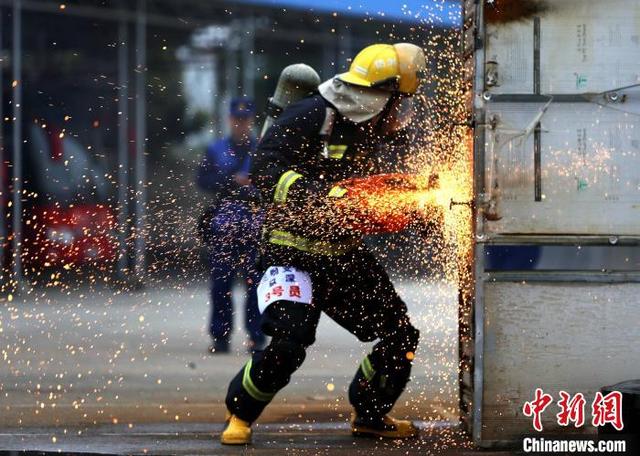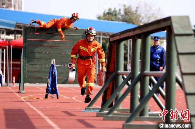 图为纵深灭火救人比赛。 鞠丹阳 摄