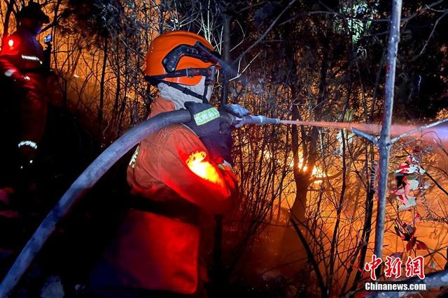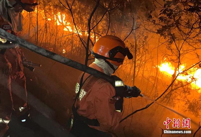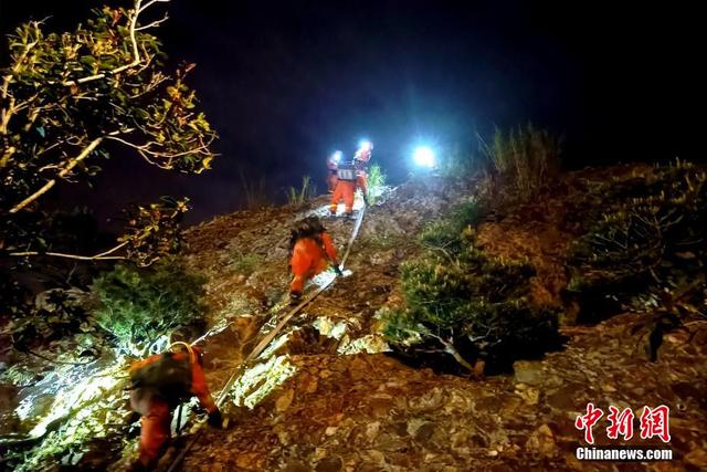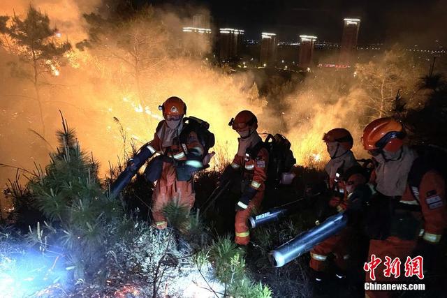 福建森林消防指战员连夜扑救。 卢逸致 摄