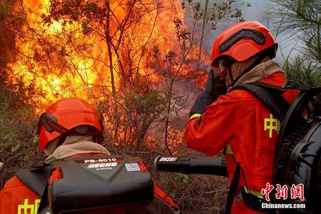 福建森林消防指战员奋力灭火。 卢逸致 摄