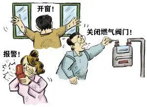 燃气泄漏时,关气阀开门窗