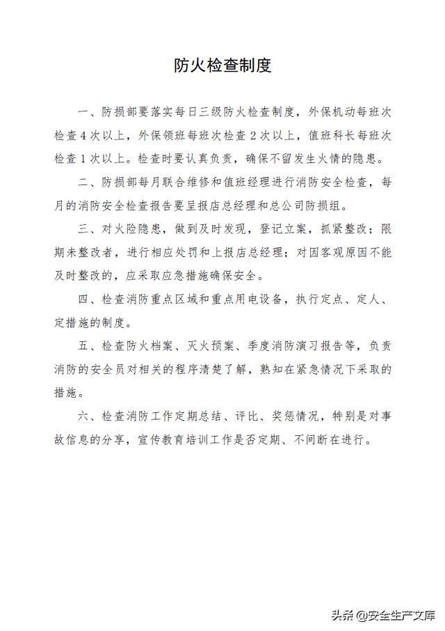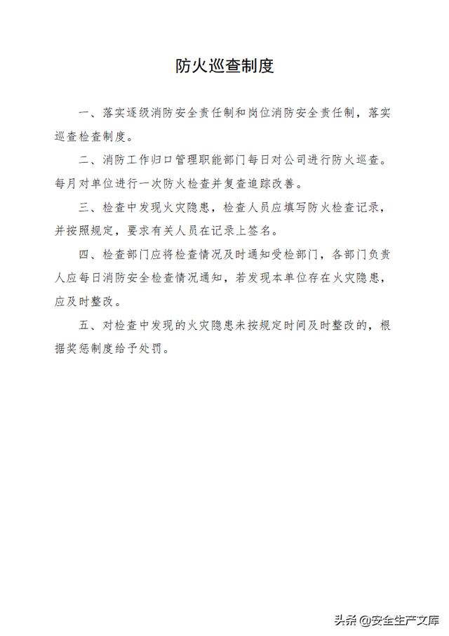 本文的标题是《企业消防安全检查制度,您做到了没?》来源于网络由作者陈梓珊采编而成,本文关键词为:安全检查,制度,主要讲述了一、防火检查巡查制度第一条防火巡查、检查由...山东省实施消防安全责任制规定