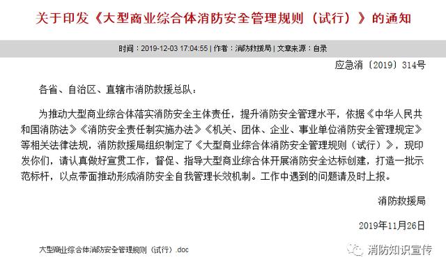 本文的标题是《企业常用消防安全管理制度规程!》来源于网络由作者陈欣采编而成,本文关键词为:规程,消防安全,主要讲述了构建逐级岗位责任体系一、消防安全责任人职责法人单...