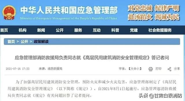 近日,中华人民共和国应急管理部公布了《高层民用建筑消防安全管理规定》自2021年8月1日起施行,即应急管理部令第5号。识别二维码即可查看。