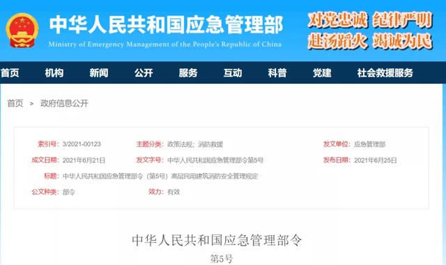 本文的标题是《应急管理部令第5号!《高层民用建筑消防安全管理规定》8月1日起施行》来源于网络由作者陈姝彤采编而成,本文关键词为:民用建筑,管理规定,主要讲述了近日,中华...