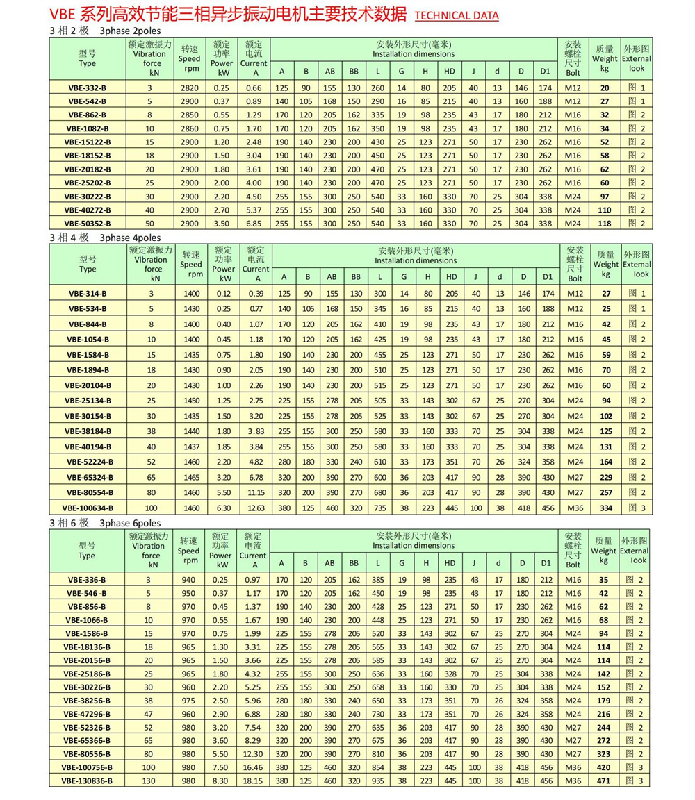 VBE系列高效节能三相异步振动电机运用大量新技术、新工艺、新材料,具有高效节能,其效率高于国家标准2~2.5个百分点,安装尺寸与 VBE系列高效节能振动电机国际接轨,与美国马丁公司电机安装尺寸完全一致。全系列电机体积小、重量轻、外型美观,综合性能远优于国内同类产品的综合优势。